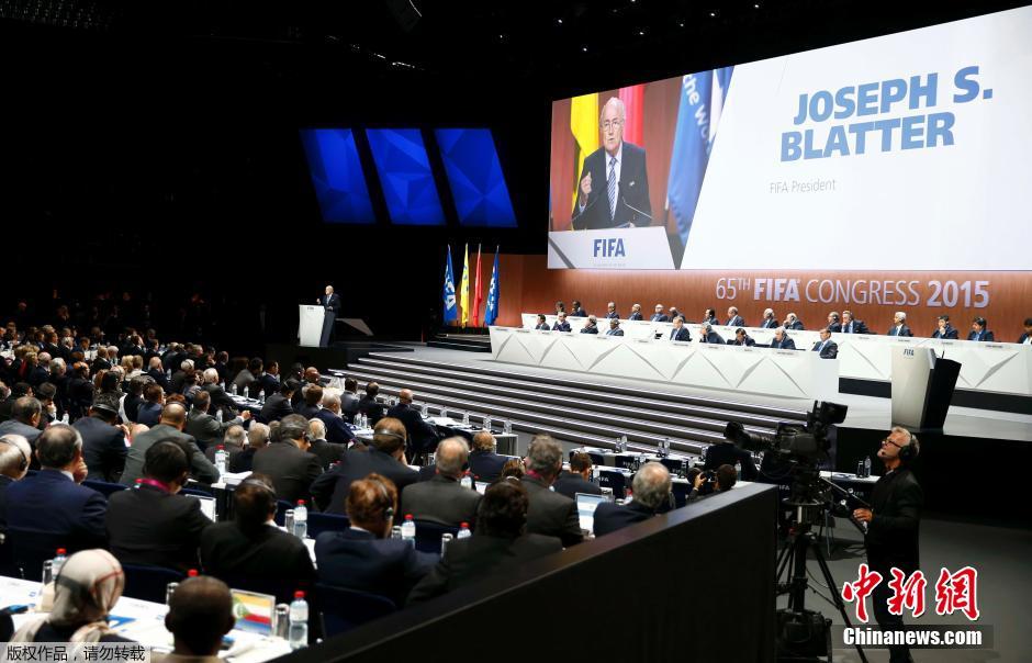 当地时间5月29日,第65届国际足联大会在苏黎世举行。现任国际足联主席布拉特出席并发表讲话,现场一位示威者举旗闹场,被保安及时控制。