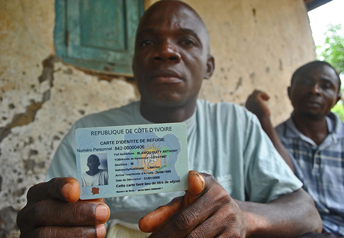 一名利比里亚难民在展示他的身份证。他所在Tabou地区距离利比里亚边境30公里,许多利比里亚人在象牙海岸这个区域生活了超过20年。