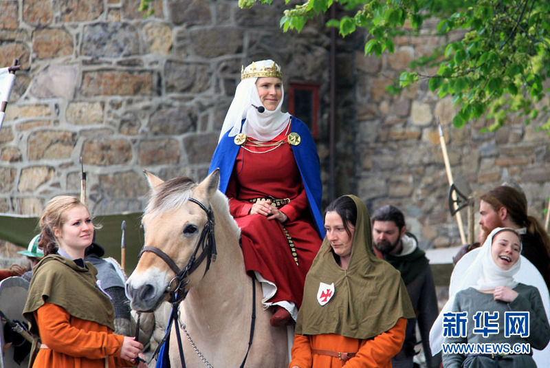 5月30日,在挪威首都奥斯陆的阿克斯胡斯城堡,身穿中世纪服装的演员们正准备上场表演。为期三天的奥斯陆中世纪节于5月29日至31日举行,向参观者展示奥斯陆中世纪时期人们的生活状况。新华网记者张淑惠摄