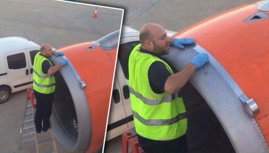 英国一名乘客乘坐廉价航空客机起飞前,发现机场维修人员竟用胶带粘贴引擎外壳。震惊中,这名乘客拍下这一幕并上传互联网,引发大量网友转发和评论。这最终被证明是虚惊一场。一些专家表示,这种胶带为航空专用维修胶带,广泛用于飞机维修,不会影响飞行安全。