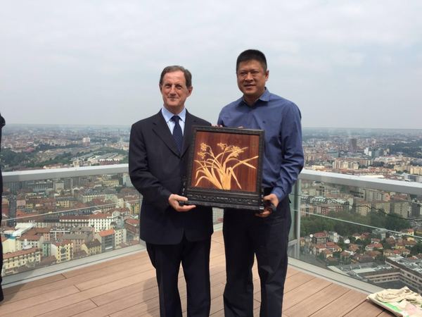 尚8文化集团运营总裁、《半月谈》新媒体中心总裁杨万里与伦巴第大区区长马里奥 曼托瓦尼合影