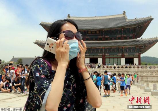资料图:韩国首尔,韩国MERS疫情目前已造成2人死亡,疫情在全国范围内拉响警报,医院设立隔离区,民众出行戴口罩。