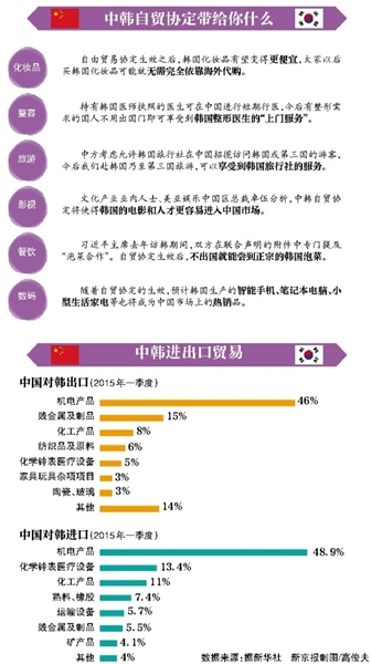 王金波举例说,韩国对中国出口汽车,一般是进口韩国零部件到中国组装,今后进口零部件价格会下降,再加上从韩国进口化工原材料会更便宜,会大幅降低汽车制造成本。另外,韩国服装也会降低价格,因为制作衣服的高端化纤进口关税降低了,成本自然降低。