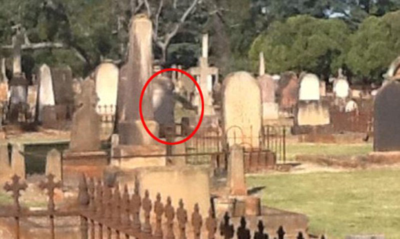 2012年5月份拍摄的照片显示,一个貌似幽灵的东西正在墓地附近徘徊。(网页截图)