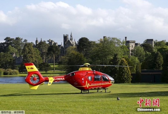 当地时间2015年6月2日,英国奥尔顿,空中救护车抵达英国最大主题公园及游乐场奥尔顿塔,准备将受伤民众送往医院救治。