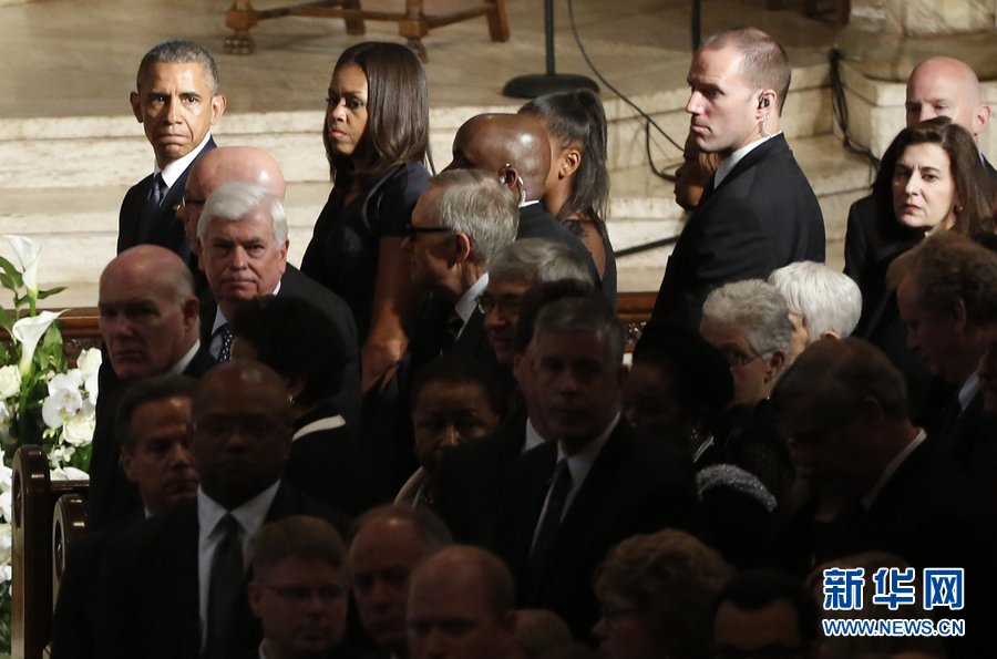 当地时间2015年6月6日,美国华盛顿,副总统拜登长子的葬礼举行。美国总统奥巴马与妻子米歇尔·奥巴马和女儿Sasha一起参加。 (图片来自CFP)