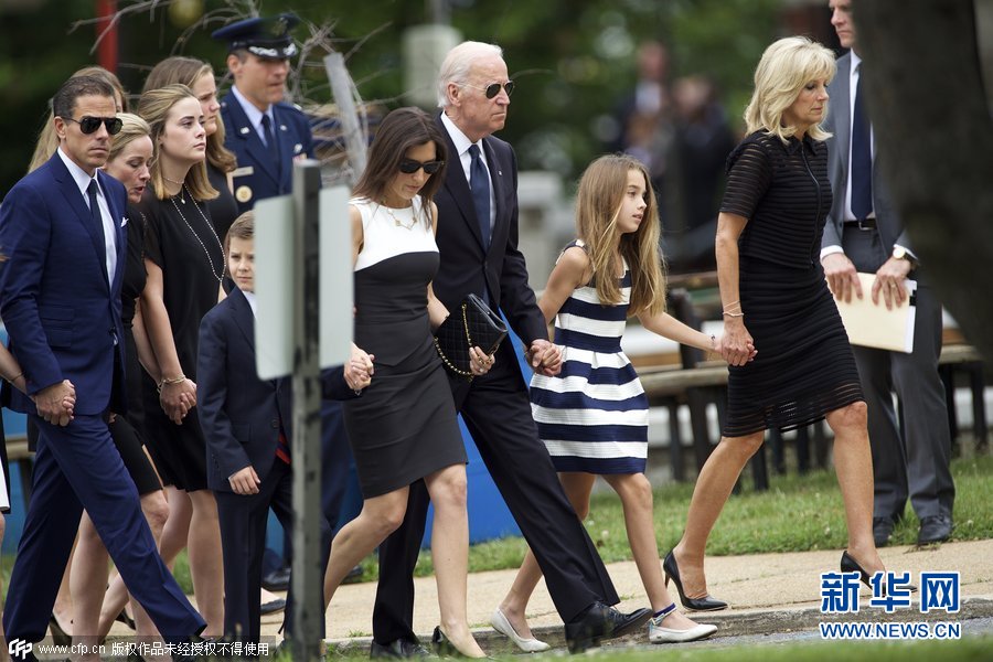 奥巴马偕家人出席副总统拜登长子葬礼(高清)