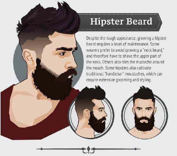 这种胡型虽然看起来比较粗犷,实际还是需要比较精心的打理。有些人不喜欢脖子上的胡须,因此会把脖子上半部的毛发刮掉,或是仔细修剪唇边的胡须轮廓来打理形状。有些嬉皮士还会参考传统的八字胡玩起复古范儿,但这就更需要经常打理和修型了。