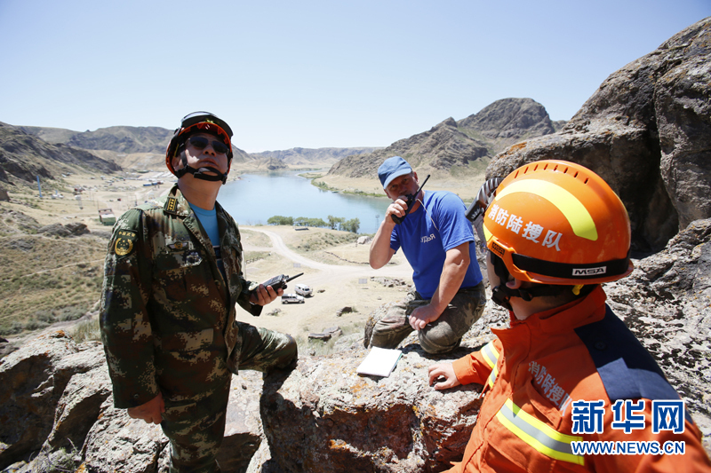 6月3日,代表中国参加上合组织国际救援联合演练的新疆消防总队队员在哈萨克斯坦阿拉木图州塔姆卡垒塔斯景区的哈内务部紧急情况委员会教练基地“岩石城-阿斯塔纳”参加演练。新华社记者沙达提摄