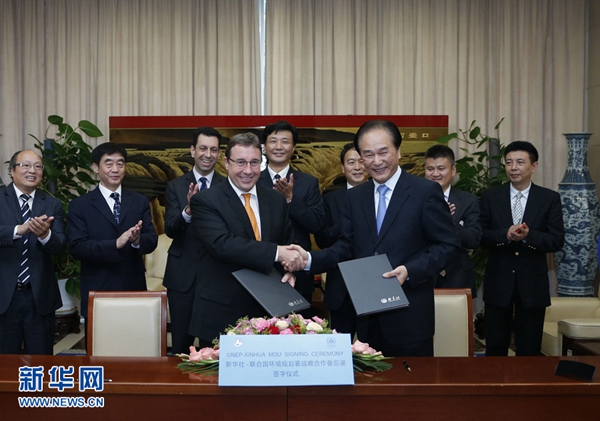 新华网北京6月10日电(记者杨依军)新华通讯社与联合国环境规划署10日在京签署战略合作备忘录,决定巩固、发展和细化有效合作,以进一步实现在保护自然与自然资源、促进可持续发展等领域的共同目标。