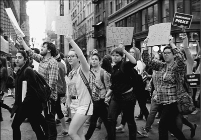 美国种族冲突事件不断发生,成为当地社会难解的问题。图为今年4月数百人在纽约曼哈顿联合广场举行示威游行,抗议警察暴力执法和种族歧视。新华社发