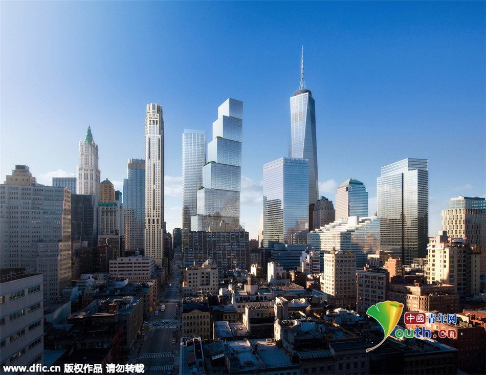 2015年6月10日报道(具体拍摄日期不详),丹麦建筑师Bjarke Ingels向世人公布了纽约世贸中心2号楼的设计方案,该项目将有80层,看起来就好像是7个各自独立的箱子叠在一起。这栋高1330英尺(约405米)的建筑物将比世贸中心1号楼稍矮,但仍是纽约第三高的大楼。世贸中心2号楼预计将于2020年向公众开放。(东方IC )