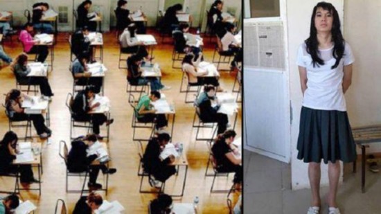 据英国媒体报道,近日,在哈萨克斯坦全国统一考试(相当于国内的高考)考场上,一名叫做阿扬-日丹诺夫的20岁小伙,因男扮女装替他17岁的女友考试被发现,被处以1万余元的罚款。