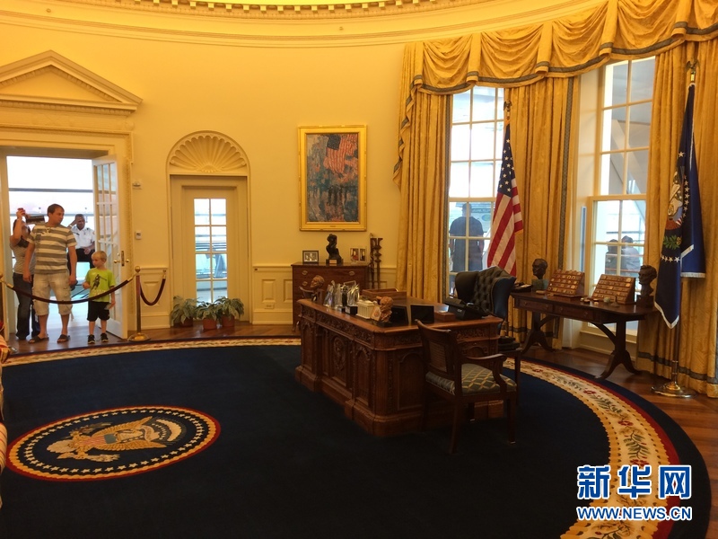 图书馆里典雅庄重的“白宫椭圆形办公室”。新华网记者 张永兴 摄