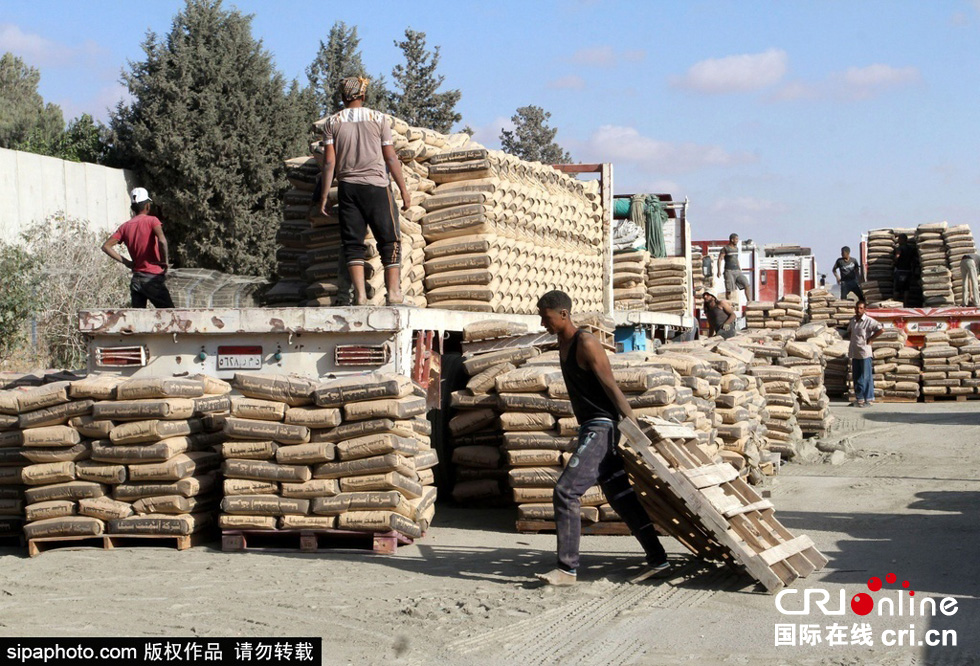 当地时间2015年6月13日,巴勒斯坦加沙,埃及宣布重新开放位于西奈半岛与加沙地带之间的拉法口岸后,超过2200吨建筑材料经过拉法口岸运抵加沙,巴勒斯坦民众开始了加沙的重建工程。图片来源:Sipa Photo