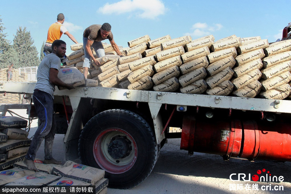 当地时间2015年6月13日,巴勒斯坦加沙,埃及宣布重新开放位于西奈半岛与加沙地带之间的拉法口岸后,超过2200吨建筑材料经过拉法口岸运抵加沙,巴勒斯坦民众开始了加沙的重建工程。图片来源:Sipa Photo
