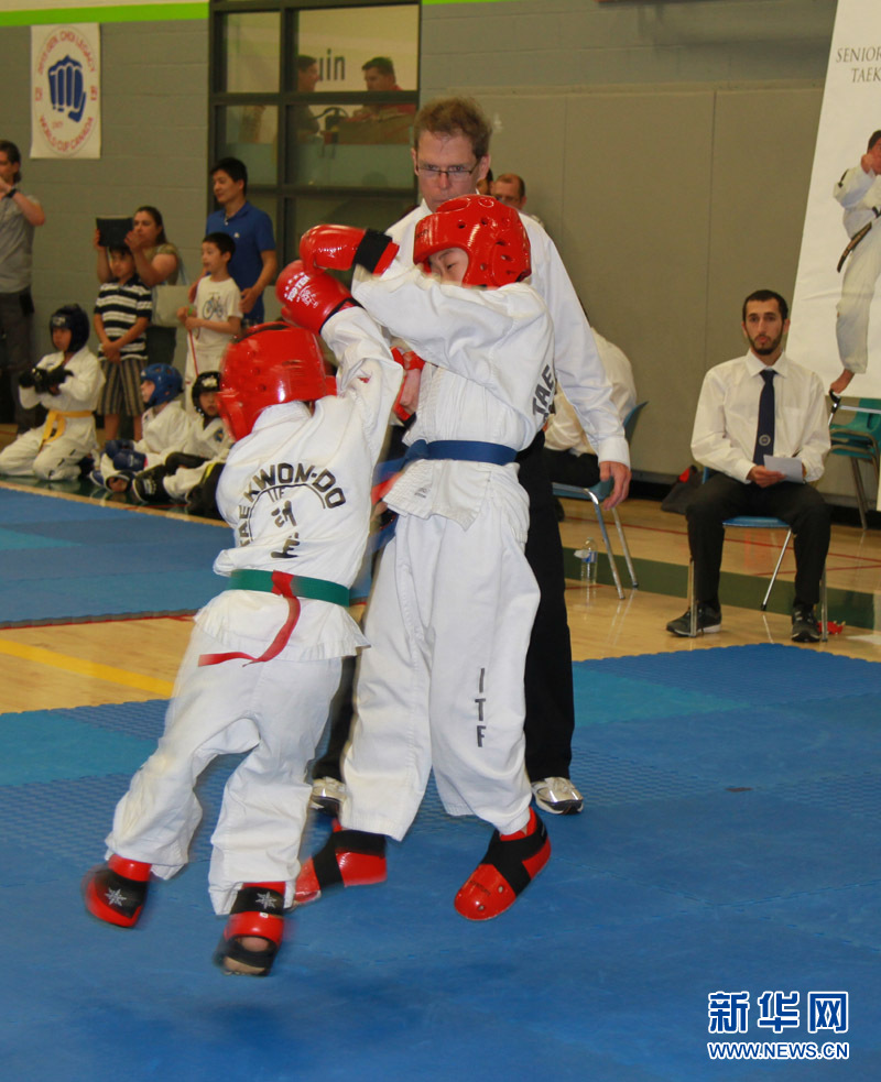 加拿大苍轩国际跆拳道联盟6月13日在渥太华阿岗昆体育馆举行国际杯大赛,庆祝跆拳道创立60周年。李保东 摄