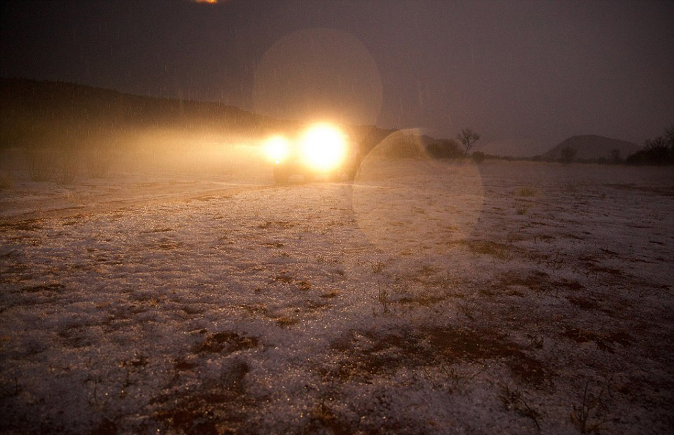 澳大利亚沙漠突降冰雹 红色土地“披上白衣”(高清组图)
