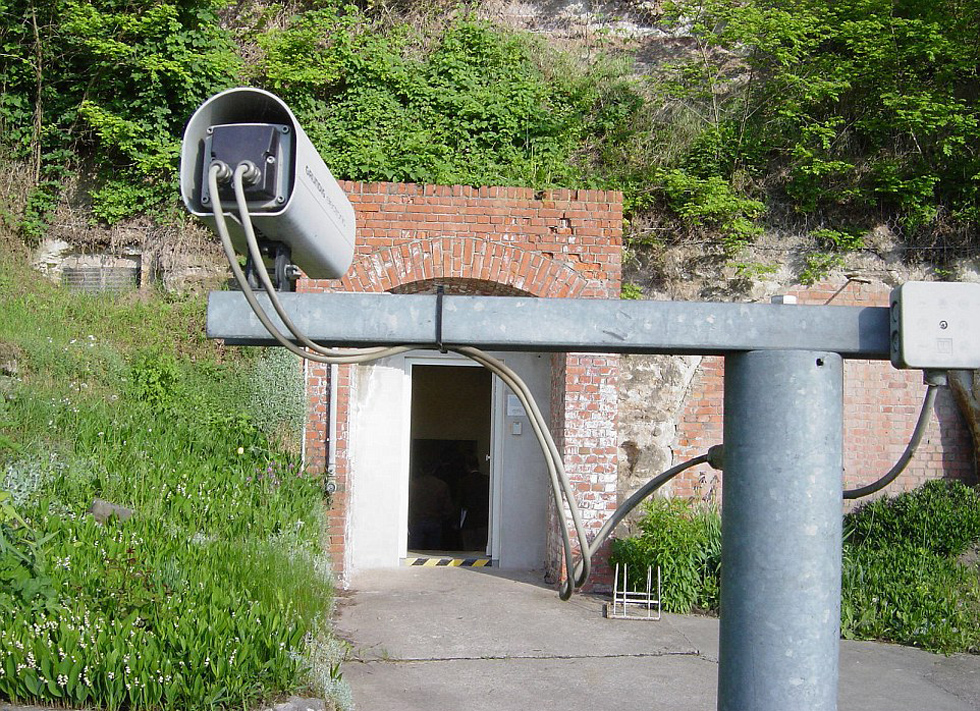 地堡中的每个家庭有232平方米的私人公寓。图中是人员进入门。(网页截图)