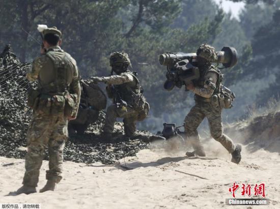 当地时间2015年6月11日,拉脱维亚Adazi,多国军队参加北约“军刀出击”演习。