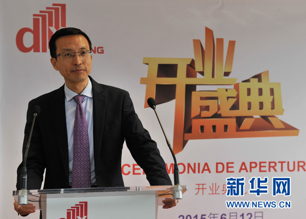 西班牙中国商会主席刘玮致辞(新华社记者 谢海宁摄)