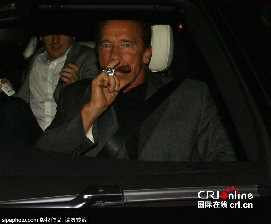施瓦辛格叼雪茄烟现身 大BOSS范儿十足
