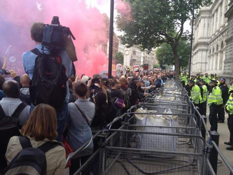 当地时间2015年6月20日,英国伦敦,示威者集会抗议英国政府财政紧缩政策。成千上万示威者从伦敦金融城出发,前往威斯敏斯特。