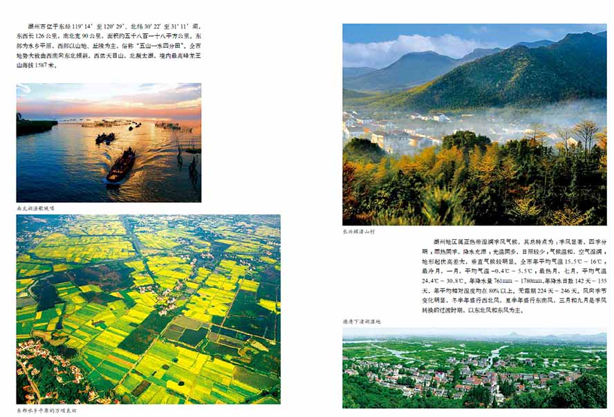 湖州地区属亚热带湿润季风气候,其总特点为:季风显著,四季分明;雨热同季,降水充沛;光温同步,日照较少;气候温和,空气湿润;地形起伏高差大,垂直气候较明显。全市年平均气温15.5℃~16℃;最冷月,一月,平均气温-0.4℃~5.5℃;最热月,七月,平均气温24.4℃~30.8℃。年降水量761mm~1780mm,年降水日数142天~155天,年平均相对湿度均在80%以上。无霜期224天~246天。风向季节变化明显,冬半年盛行西北风,夏半年盛行东南风,三月和九月是季风转换的过渡时期,以东北风和东风为主。湖州境内主要河流有西苕溪、东苕溪、頔塘、下游塘、双林塘、泗安塘等;境边南接东苕溪上游,北濒太湖,东联大运河及黄浦江。平原河网湖荡密布,山区建有山塘水库,库容10立方以上水库有149座。域内河道密度约2.6-3.8公里/平方公里,其中河流、湖泊面积496平方公里。京杭大运河和源于天目山麓的东、西苕溪纵穿横贯湖州全境。苕溪东经頔塘,流于黄浦江,北经56条溇港注入烟波浩渺的太湖。境内水系密如蛛网,形成江南水乡。