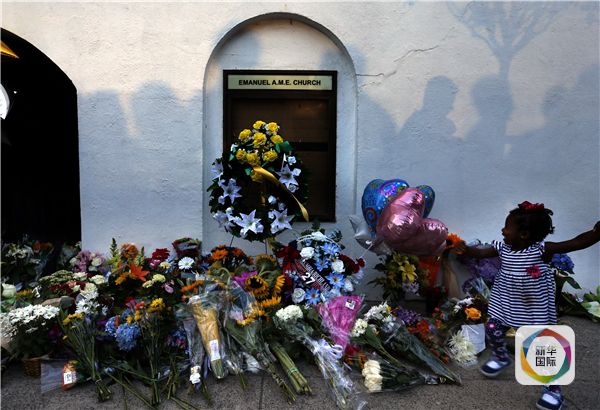 (图为6月18日,鲜花摆放在美国查尔斯顿市的伊曼纽尔非裔卫理圣公会教堂前。图片来源:新华/美联)