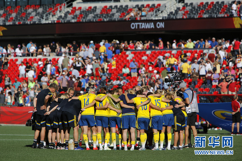 6月20日,在加拿大渥太华举行的2015年女足世界杯赛八分之一决赛中,德国队以4比1战胜瑞典队,晋级八强。大卫·卡瓦伊 摄  新华网发