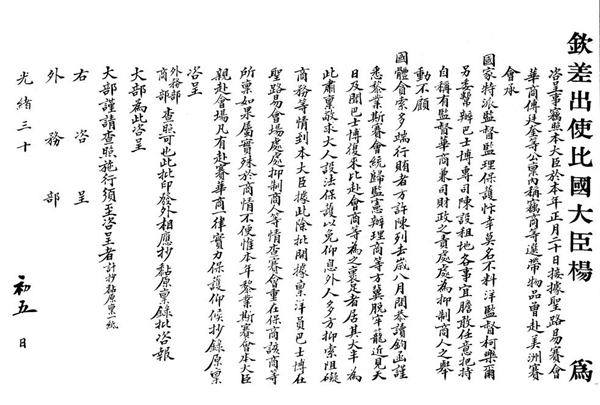 决定参加比利时列日世博会后,清政府按海关总税务司赫德的意图将前一年在美国圣路易斯销售剩余的参展货品转运到列日会场,由当时正在比利时休假、曾任厦门税务司的比籍洋员阿理嗣代办参展事务。海关洋员操办过程中排斥中国官员和商人参与,故意展示中国黑暗落后一面的行径终于激起了中国驻外使节、旅欧学生和与会华商的强烈反感和激烈反击。在中国参加比利时列日世博会赛会监督杨兆鋆的支持下,参赛华商和留学生与海关洋员进行了坚决的斗争,并取得了一定的自主权。杨兆鋆上任后,一改过去洋人凭其自己爱好征集展品的做法,而是由官方征集为主,民间自愿报名的办法。他在一份给清政府的奏章里这样写道:“赛会(指世博会)关系商务,向由总税务司领办,以西人置华货,所择已未必精,陈所不应陈,每贻笑柄。嗣后应由商部奏派熟悉商情丞参,充当监督;会同驻扎该国使臣办理,下外务部、商部议……”从这奏章中可看出他对办世博会的理念。在他积极组织下,全国有18个省、30多个城市组织了展品参展。