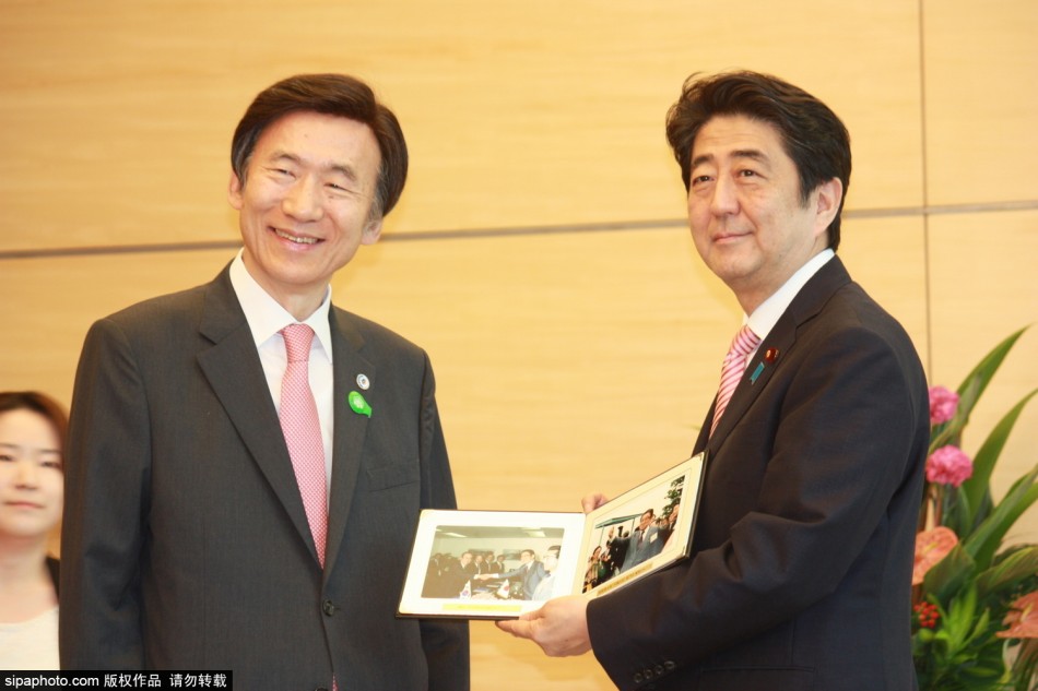 安倍会见韩国外长尹炳世 获赠父亲安倍晋太郎照片