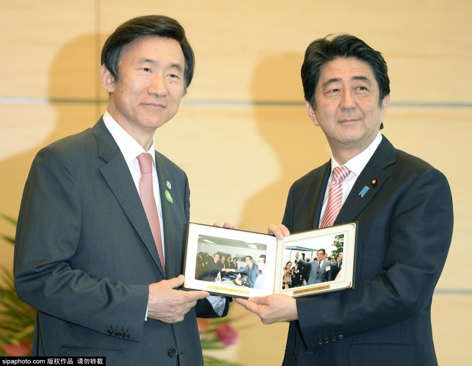 安倍会见韩国外长尹炳世 获赠父亲安倍晋太郎照片
