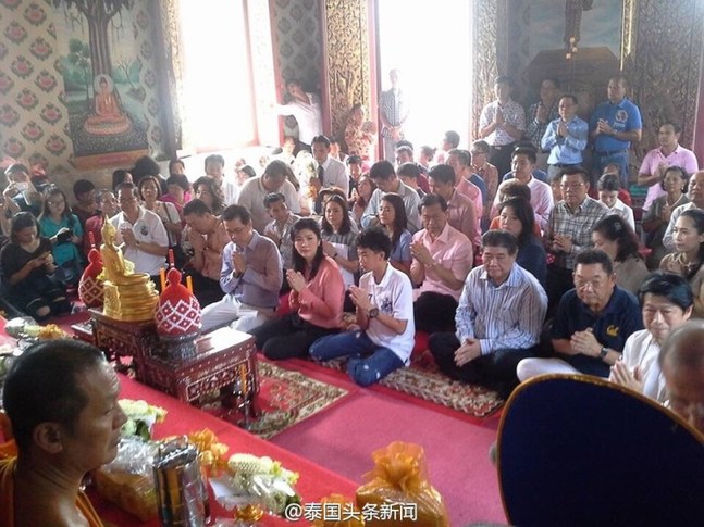 泰国前总理英拉·西那瓦21日迎来48岁生日。泰国《民意报》报道,英拉当日带着丈夫、儿子前往曼谷一座寺庙布施、祈福。多名英拉家族成员、友人以及为泰党前秘书长蓬探·维察也猜、数名前为泰党议员为英拉庆生,不少民众也前来祝福。他们送给英拉玫瑰花,为她唱起歌曲《祝你生日快乐》。现场还有栽树祝福英拉和抽奖赢取英拉著作等活动。英拉放生了3000多只鸟。她说:“希望(放生)能带走每个人身上的苦恼与忧愁。”英拉当天更换了其“脸谱”主页头像,新头像中的英拉身穿白色衬衫,手捧一束红色玫瑰花。(杨舟) 【新华社微特稿】