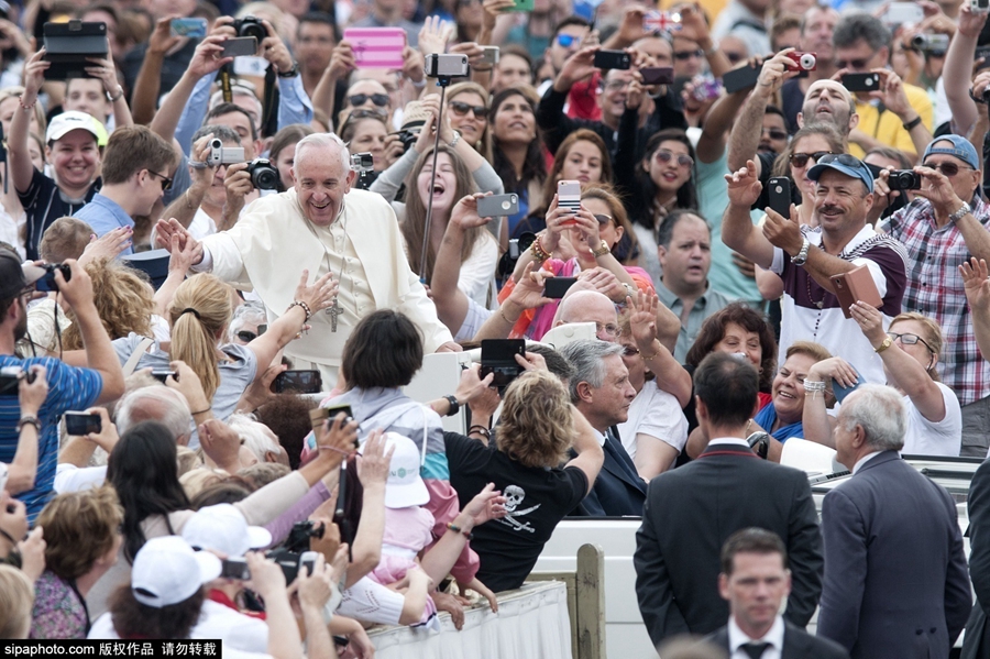 当地时间2015年6月24日,梵蒂冈,罗马教皇弗朗西斯在圣彼得广场接见教众。
