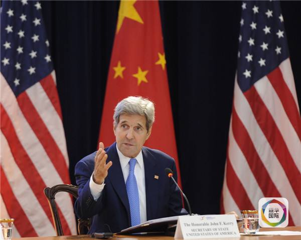 美国国务卿克里23日在第七轮中美战略与经济对话和第六轮中美人文交流高层磋商联合开幕式上讲话。 新华社记者鲍丹丹摄