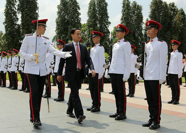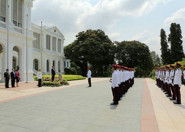 6月25日,陈晓东大使在新加坡总统府向陈庆炎总统递交国书。递交国书前,陈大使检阅了新加坡武装部队仪仗队。递交国书后,双方进行了亲切友好的交谈。