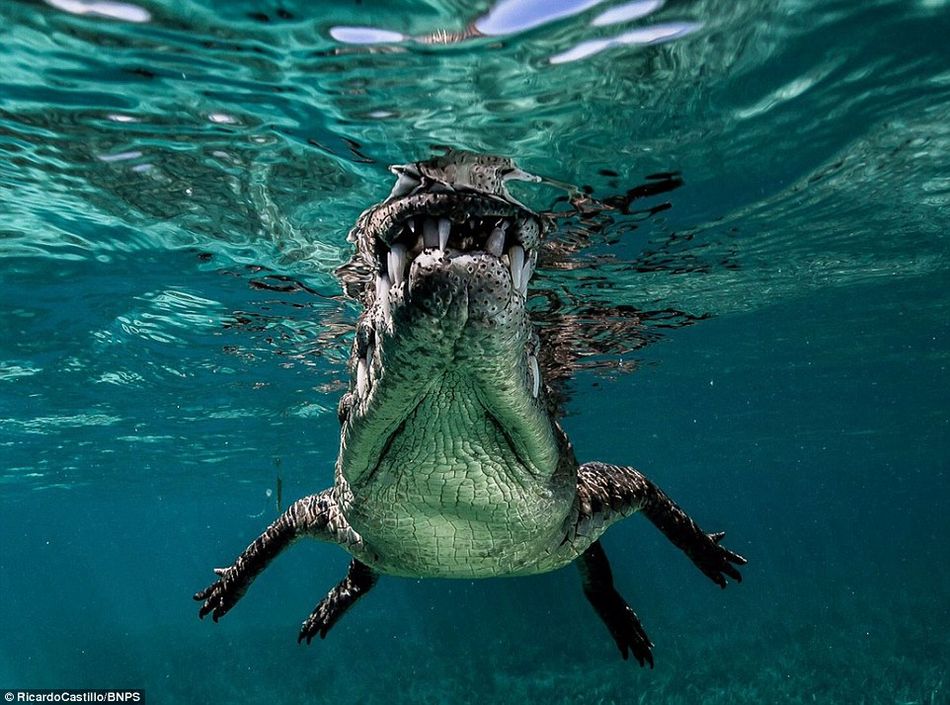 潜水偶遇"食人鳄"摄影师冒险抓拍(高清组图)