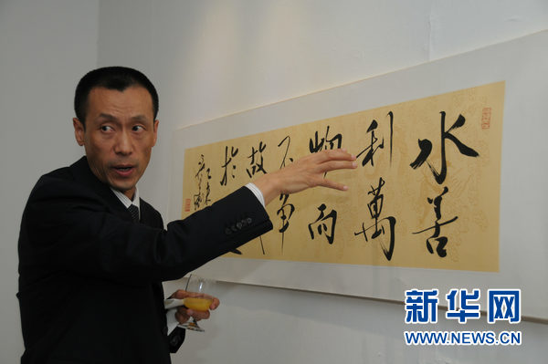 刘波向观展人士讲解自己的作品。新华社发(阿代尔摄)