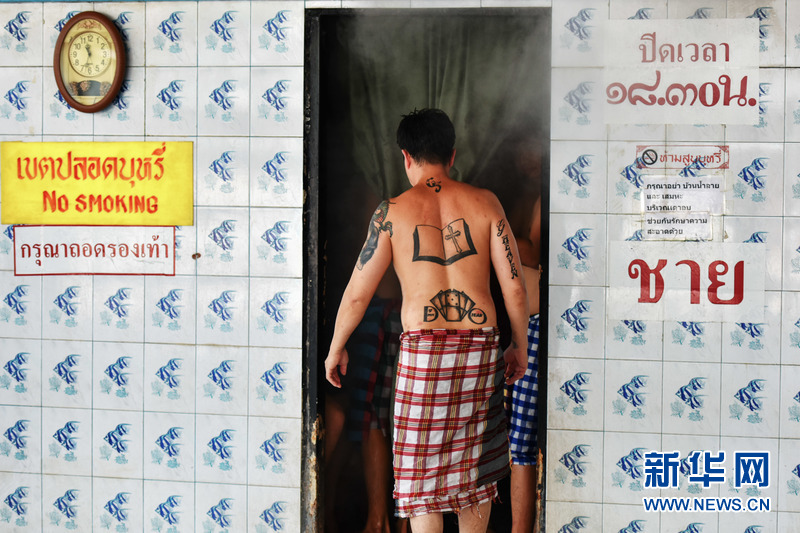 一名戒毒者走进蒸汽浴房接受蒸汽药浴。 新华网记者 李芒茫 摄