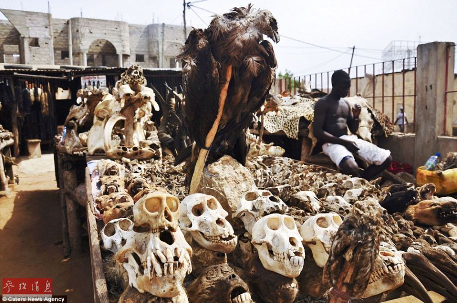 摄影师表示在这个市场里还可以找到猫的头部,眼镜蛇和羚羊头。