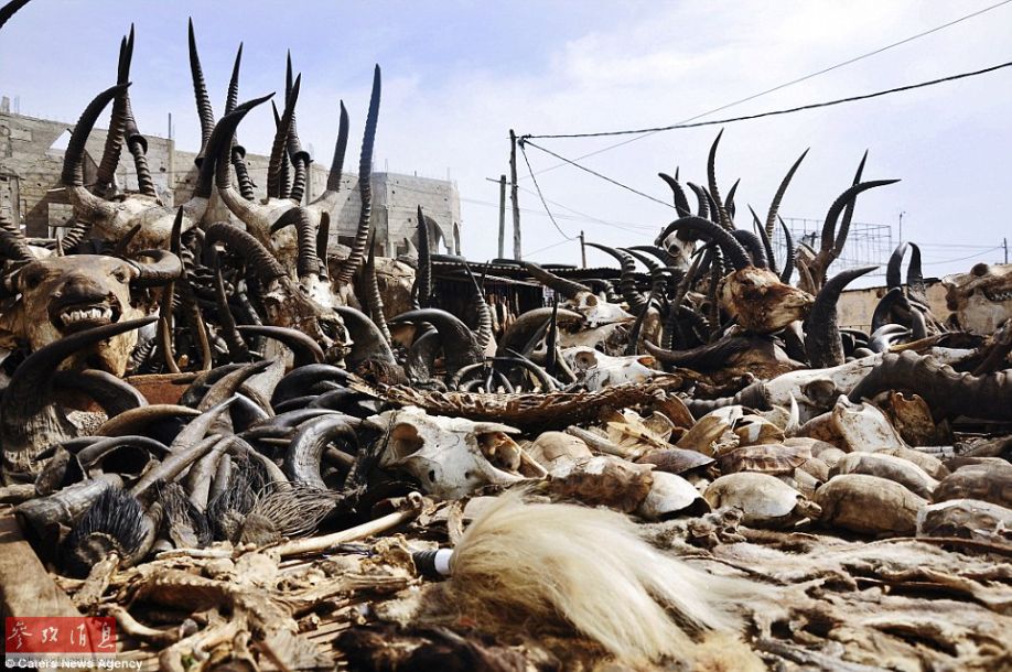 在这个市场里你可以看到羚羊头颅,龟壳和牛角。