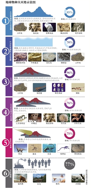 埃尔利希说,他们用了一年时间来完成这份报告,通过化石分析对比了地球历史上脊椎动物的灭绝率。“之所以选用脊椎动物,是因为相对于昆虫等无脊椎动物,脊椎动物有更好的化石记录。”