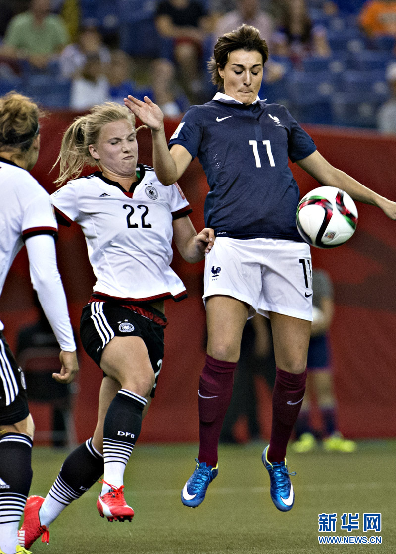 6月27日,在2015加拿大女足世界杯四分之一决赛中,德国队与法国队在120分钟的比赛中战成1比1平,德国队最终在点球大战中以5比4战胜法国队,晋级半决赛。新华社发 (安德鲁·宋 摄)