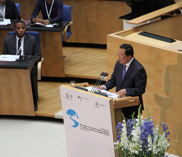 联合国教科文组织第37届大会主席、中国教育部副部长郝平在开幕式上发表讲话说,当今世界遗产保护面临自然灾害和人为灾难的双重挑战。他还对加强世界遗产保护提出建议,涉及遗产委员会改革、加强对发展中国家遗产保护管理的支持、发挥遗产的教育功能等多个方面。