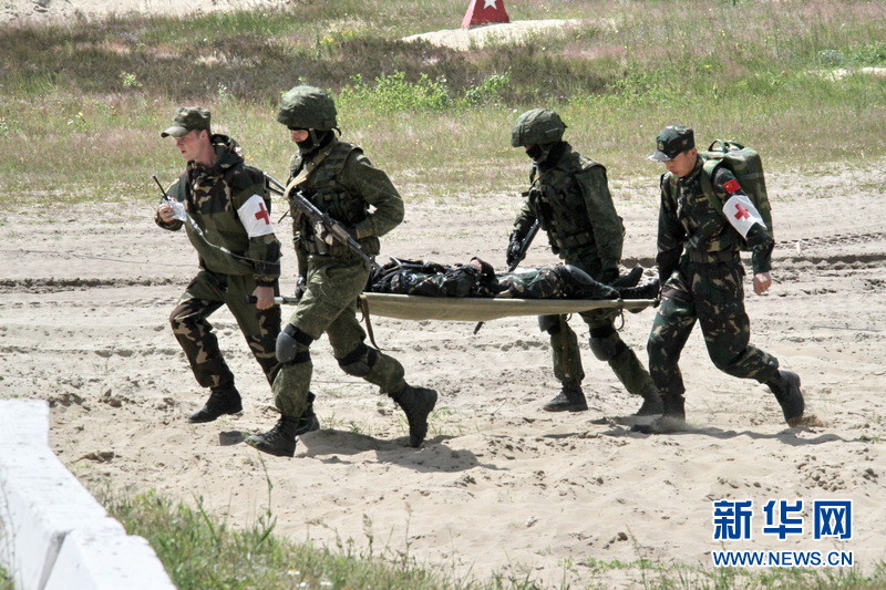 中白联合反恐分队演练救护伤员科目。(陈俊锋摄)