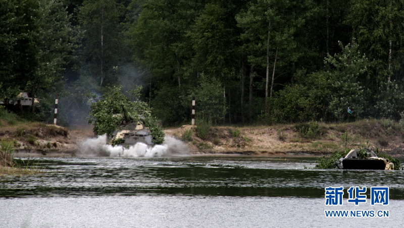装甲车下水,开始渡河。(陈俊锋摄)