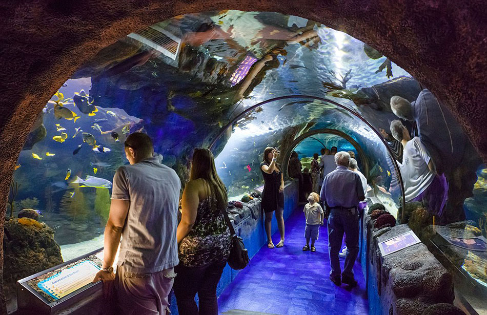 位于明尼苏达州的“美国购物中心”也建有水上运动中心和海洋生物馆,内有黄貂鱼、海龟以及其他多种鱼类(网页截图)