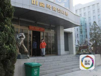 展示馆门口有两座栩栩如生的朝鲜虎雕像。虎是朝鲜半岛人民的精神象征,代表着敏捷、勇猛,许多朝鲜艺术家都喜欢以虎作为创作题材。