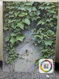 一种“宝石画”引起了记者的兴趣。馆员告诉记者,所谓“宝石画”就是把上千年的矿物宝石研磨成粉,依据宝石自有的天然颜色进行作画,再用特殊工艺固定粉末完成创作。